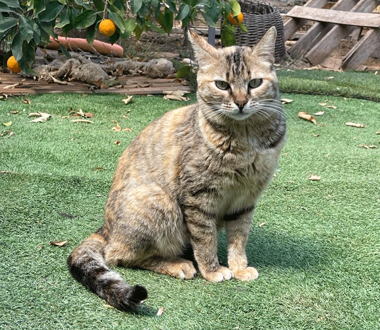 Dann möchte die süße Lola Euch noch viele Grüße zum Start in den Mai schicken, sie hat sich zu einer wirklich schönen Katze entwickelt! Die gekappte Ohrspitze bedeutet übrigens, dass sie eine Straßenkatze war, die kastriert wurde. So sehen die Tierschützer sofort bei ihren Fang- und Kastrationsaktionen, wer ihnen da in die Falle gegangen ist.
